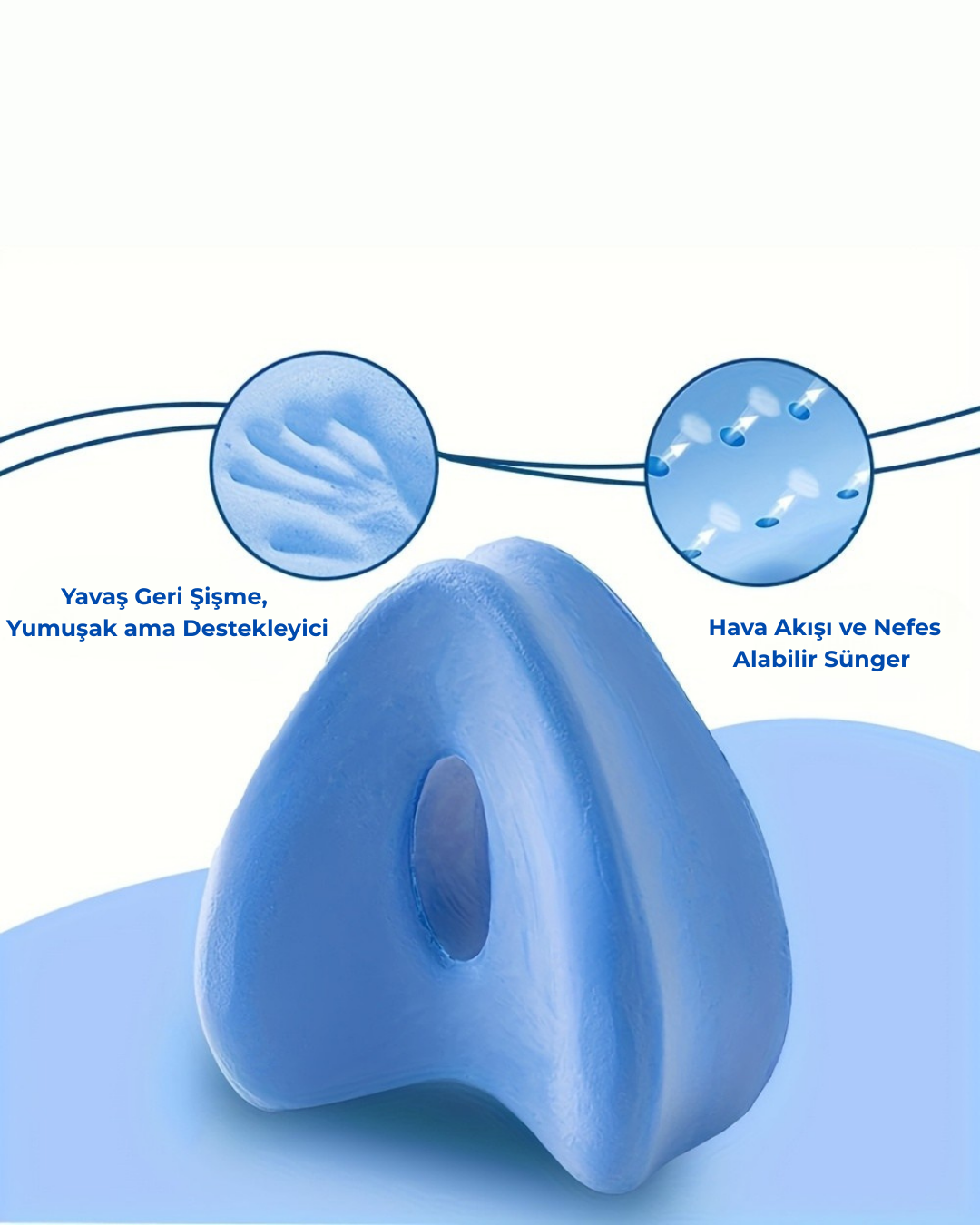 Ayarlanabilir kayışı sayesinde yastık gece boyunca kaymaz, her uyku pozisyonunda sabit kalır. Yumuşak, elde yıkanabilir kılıfı ise hem hijyenik hem de uzun ömürlü kullanım sunar. Hafif ve taşınabilir tasarımıyla seyahatlerde de rahatlığınızı yanınızda götürebilirsiniz.
